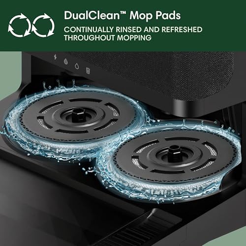 DOUBLES DOWN ON MOPPING. Spinning DualClean Mop Pads and SmartScrub eradicate messes with 2x deeper scrubbing* and downward pressure, Mop with cleaning solution** or water *Compared to standard vacuum & mop mode for coffee and grime