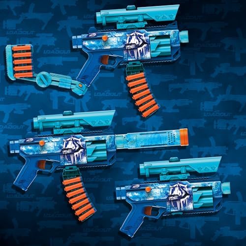 NERF LOADOUT FROSTFUSION BLASTER: The blaster features the legendary FrostFusion skin! Bring video game action to life as you imagine battling opponents with the power of epic icy blasts!
