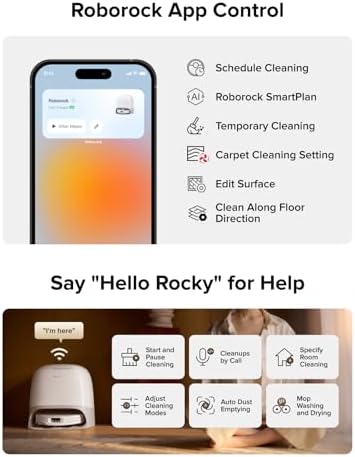 Roborock App: The Roborock App is packed with powerful features. Beyond standard controls, it includes SmartPlan 2.0, which learns your cleaning habits and adapts to different room types and floor surfaces for smarter, more efficient cleaning tailored specifically to your home.