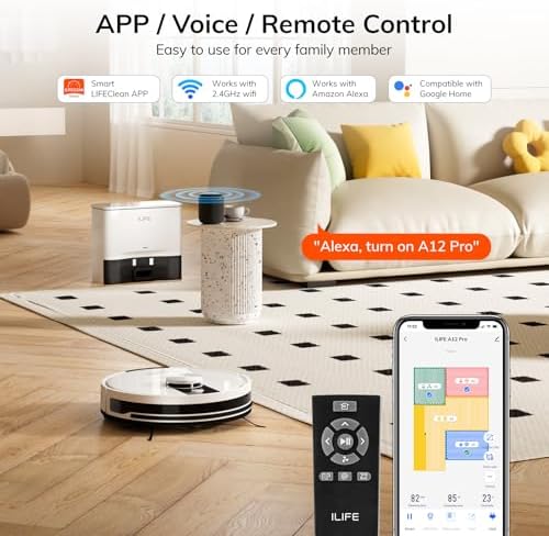 Convenient Voice Control and Remote Control: In addition to the ILIFEClean app, the A12 Pro robotic vacuum supports voice commands via Alexa and Google Assistant, and you can also control it directly via the included remote control