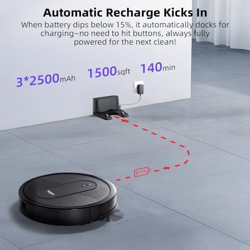 🔋【140 Min Runtime】➤MONSGA robot vacuum cleaner runs 140 minutes straight, tackling up to 1,500 sqft on a single charge—perfect for large homes or multi-zone cleaning. When battery drops below 15%, it automatically returns to its dock to recharge, ensuring it’s always ready for the next clean. No more dead batteries mid-task