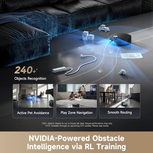 Better Vision for a Better Clean: The OmniSight system 2.0 uses an auto-retracting LDS sensor and binocular navigation to identify and avoid 240+ objects, preventing accidents or damage during cleanup.