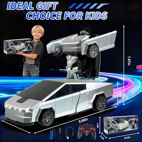 【Durable, Kid-Safe & Rechargeable Design】Made from premium, non-toxic ABS material, this RC transformer toy is tough enough to handle bumps and drops. The sturdy body and anti-fall design ensure long-lasting fun. Includes a rechargeable 3.7V battery for extended playtime (remote requires 2×AA batteries, not included).