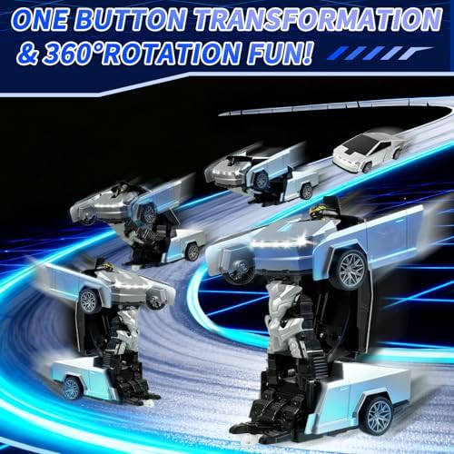 【One-Button Auto Transformation & 360° Drift】Press the transformation button and watch as the car smoothly morphs into robot form—no manual steps needed! Enjoy 360° spins, drifts, forward and backward motion with simple remote control. The automatic demo mode adds an extra touch of excitement to playtime.
