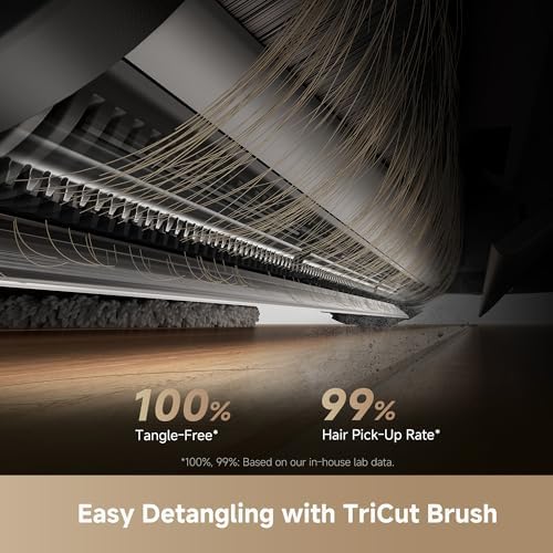 Tangle-Free Hair Removal with Specialized Brush: Designed with an innovative TriCut Brush, this robot vacuum and mop combo efficiently collects and cuts through long hairs, preventing tangles and ensuring smooth operation with minimal manual intervention.