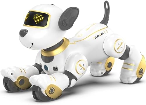 【INTELLIGENT PROGRAMMABLE TOY】: You can program the Robot dog to perform according to your demands and then it will play back your demand like forward+push+sit down+dancing or other actions.The smart dog will record up to 100 commands, It’s will help your kids use their imagination and creativity to practice simply programming