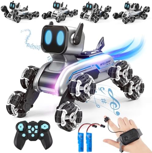 Intelligent Programming: The robot dog can perform 10 different actions with one press, including moving in various directions, spinning 360 degrees, and dancing, ideal for beginners in remote-controlled toys.
