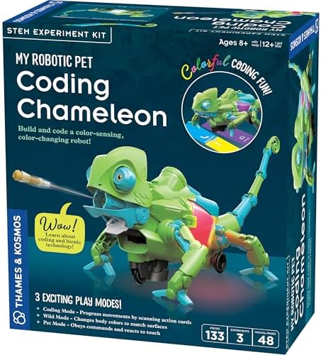 THREE UNIQUE PLAY MODES: In Coding Mode, use the action cards to program your pet to carry out a series of movements; in Wild Mode, your chameleon will camouflage and change its color to match its surroundings; in Pet Mode, this one-of-a-kind robotic reptile reacts to your touch!