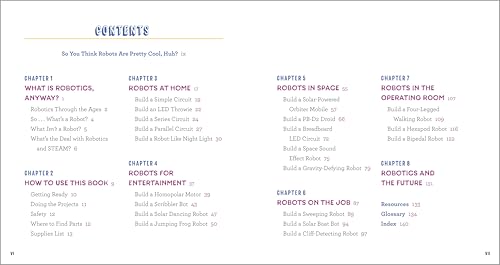 20 awesome projects―Rock the world of robotics for kids with nearly two-dozen different designs for bots that glow, draw, walk, climb, and more.Full-color photos―Construction is easy thanks to clear directions and 200 step-by-step pictures that help you build your robot right.Robots in the world―Chapters are divided based on the functions of robots, showing you how they can be used to help in your day-to-day life.