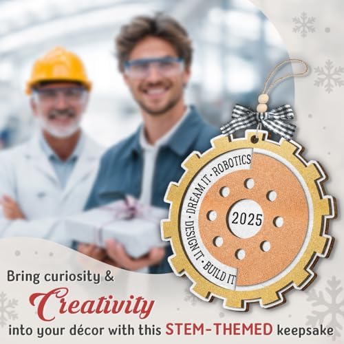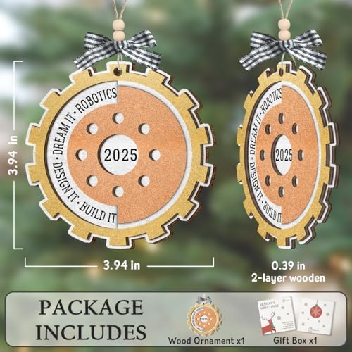 Versatile STEM Decor: Measuring approximately 3.54″x3.94″x0.2″, this wood ornament includes durable hanging ribbon and protective packaging for gifting this season. The unique gear design perfectly complements family Christmas tree decor, STEM classroom decor, or robotics lab decorations throughout the holiday seasonal decor