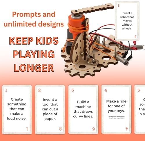 10 ENGAGING PROJECTS IN 1 BOX – Over 50 premium components, including electric motors, wood parts, and real hardware, provide 10 Challenges that spark young inventors’ imaginations. With everyday and mysterious pieces, the kit triggers creativity, boosts IQ, and instills a deeper understanding of STEM concepts.