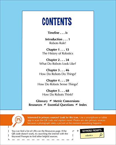 Robotics! is part of a set of two Explore Technology books that introduce young digital natives to the history, science, and engineering of the tech world in which we live, using hands-on STEM activities, essential questions, links to online primary sources and real-life connections. The other title in this series is Simple Machines!