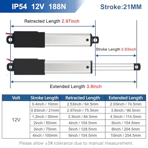 ⚙️【High quality】The linear actuator is made of high quality aluminum;with high performance motor and built-in limit switch,it can be stopped at any position and automatically stop at the top,with self-locking function.