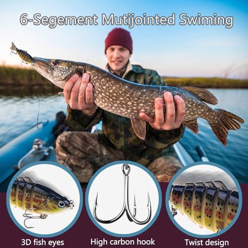 【Realistic Swimming Design】Designed with lifelike 3D swimming motion and a fully hand-coated body and eye, these freshwater fishing lures look so delicate and vivid that they look like a real fish!fooling even the most cautious fish